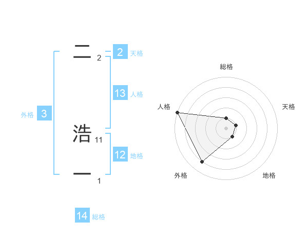 二 浩一さんの総格は14画の1点!