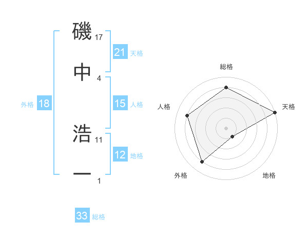 磯中 浩一さんの天格は21画の5点!