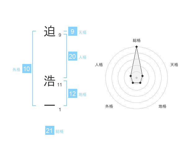 迫 浩一さんの総格は21画の5点!