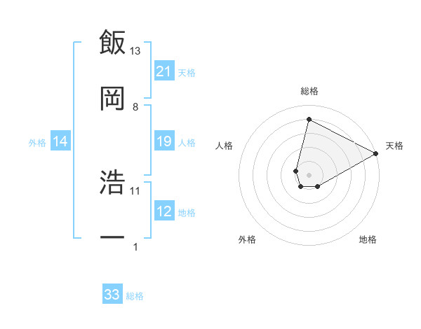 飯岡 浩一さんの総格は33画の4点!