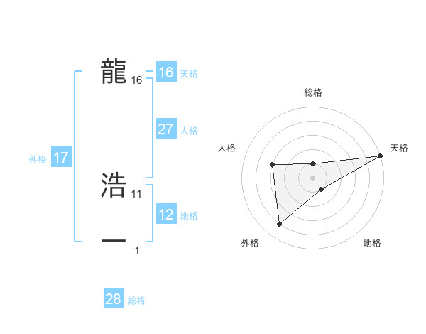 龍 浩一さんの天格は16画の5点!