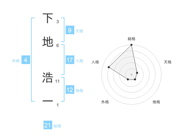 下地 浩一さんの総格は21画の5点!