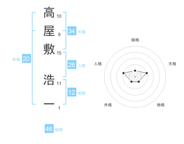 高屋敷 浩一さんの総格は46画の1点