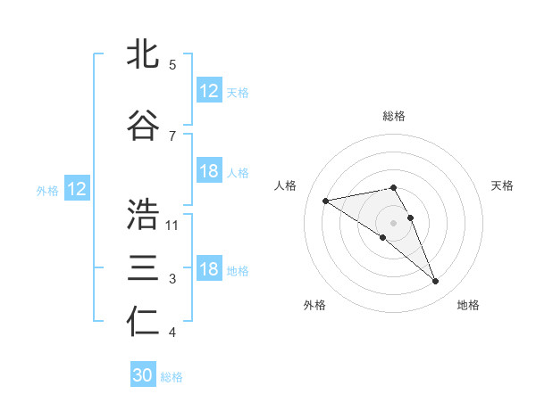 北谷 浩三仁さんの天格は12画の1点!