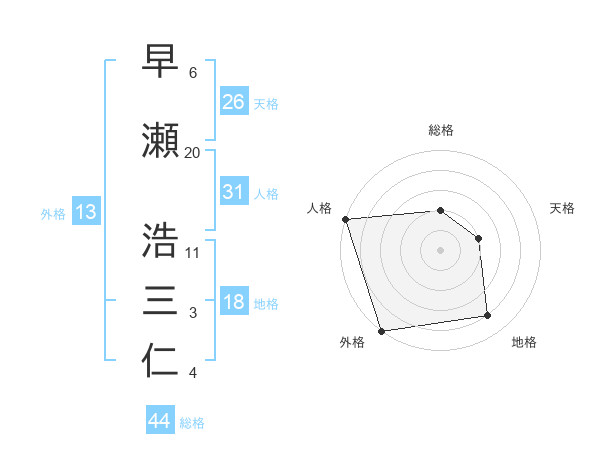 早瀬 浩三仁さんの外格は13画の5点!