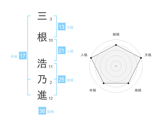 三根 浩乃進さんの総格は38画の4点!
