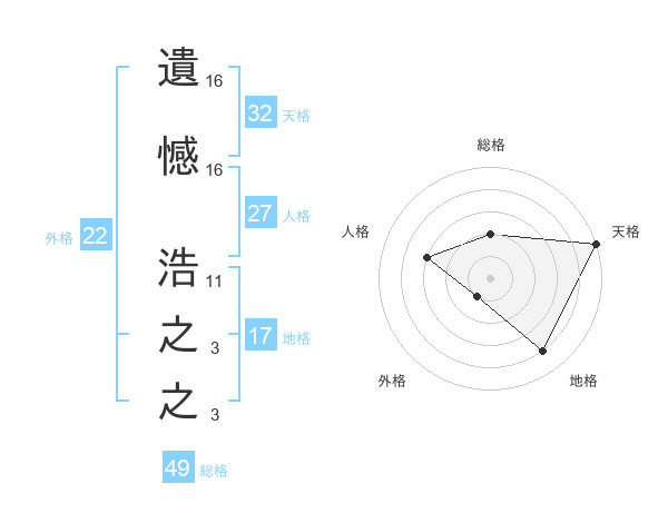 遺憾 浩之之さんの総格は49画の2点!