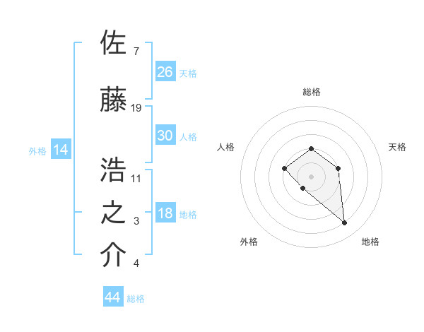 佐藤 浩之介さんを姓名の画数から五運を鑑定
