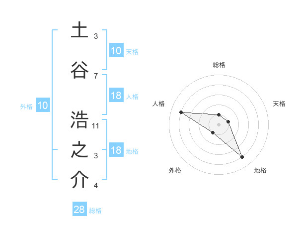 土谷 浩之介さんを姓名の画数から五運を鑑定