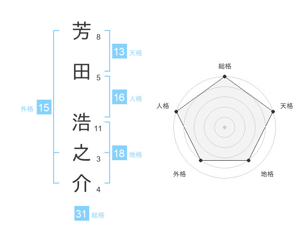 芳田 浩之介さんを姓名の画数から五運を鑑定