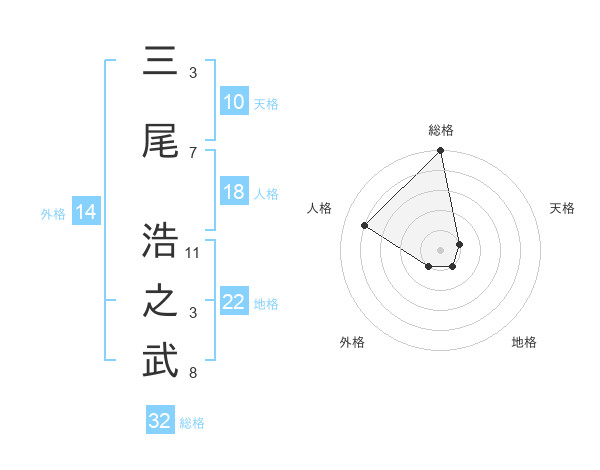 三尾 浩之武さんの総格は32画の5点!