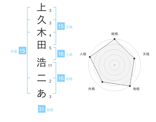 上久木田 浩二あさんを姓名の画数から五運を鑑定