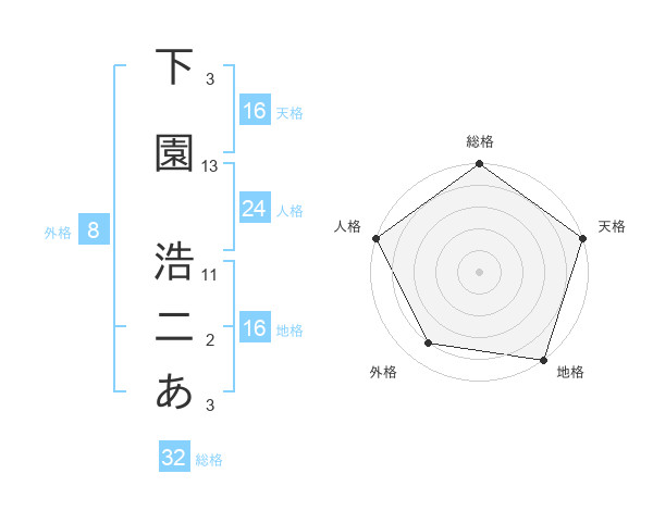 下園 浩二あさんを姓名の画数から五運を鑑定
