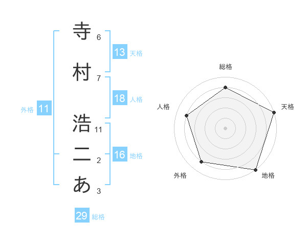 寺村 浩二あさんを姓名の画数から五運を鑑定