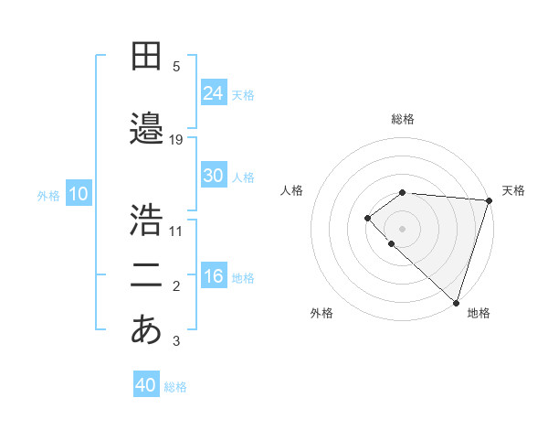 田邉 浩二あさんの総格は40画の2点