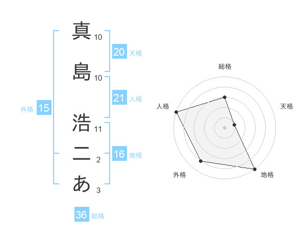 真島 浩二あさんを姓名の画数から五運を鑑定
