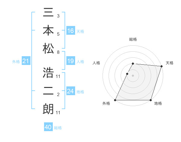 三本松 浩二朗さんの外格は21画の5点!