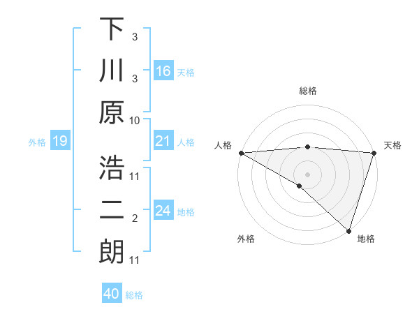 下川原 浩二朗さんを姓名の画数から五運を鑑定
