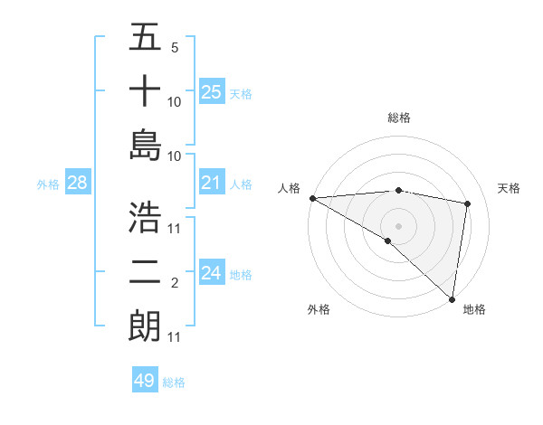 五十島 浩二朗さんを姓名の画数から五運を鑑定