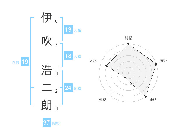 伊吹 浩二朗さんの総格は37画の5点!