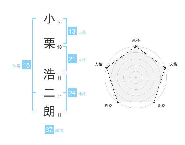 小栗 浩二朗さんを姓名の画数から五運を鑑定
