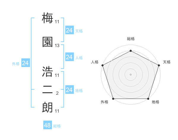 梅園 浩二朗さんの外格は24画の5点!