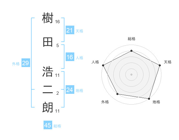 樹田 浩二朗さんを姓名の画数から五運を鑑定