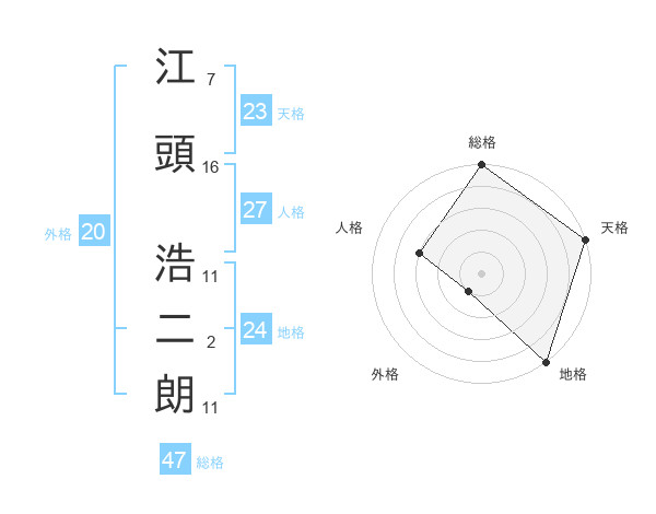 江頭 浩二朗さんを姓名の画数から五運を鑑定
