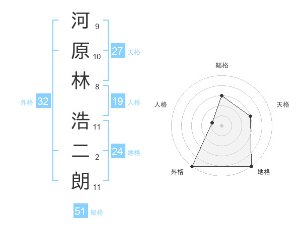 河原林 浩二朗さんを姓名の画数から五運を鑑定