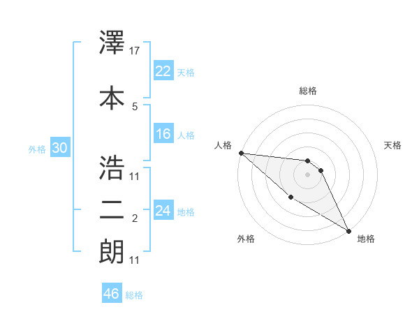澤本 浩二朗さんの地格は24画の5点!