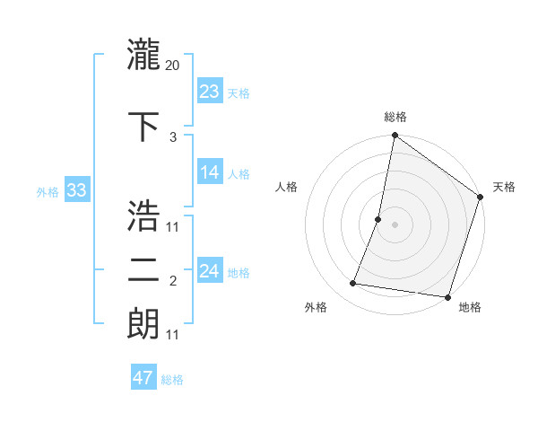 瀧下 浩二朗さんを姓名の画数から五運を鑑定