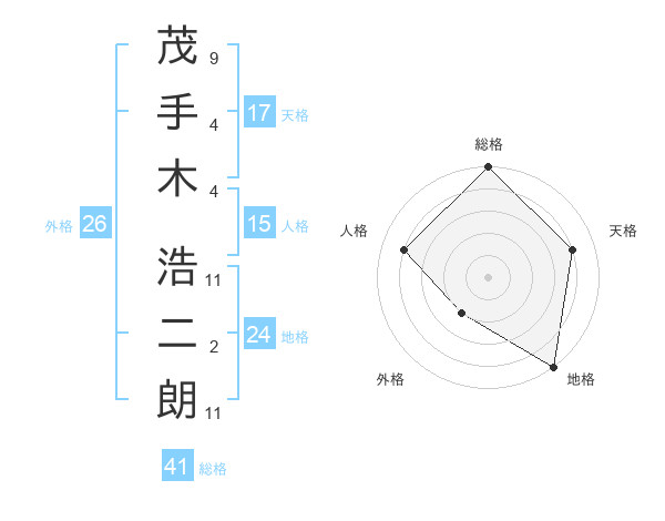 茂手木 浩二朗さんの天格は17画の4点!