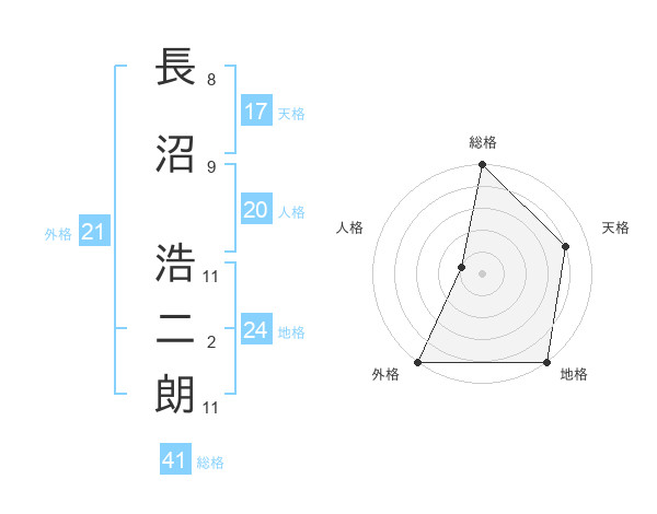 長沼 浩二朗さんの天格は17画の4点!