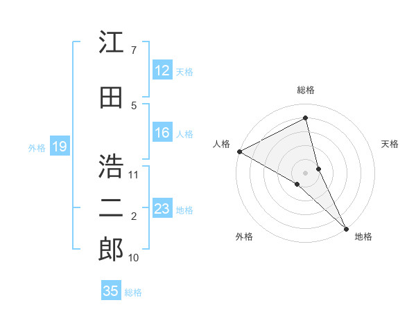 江田 浩二郎さんを姓名の画数から五運を鑑定