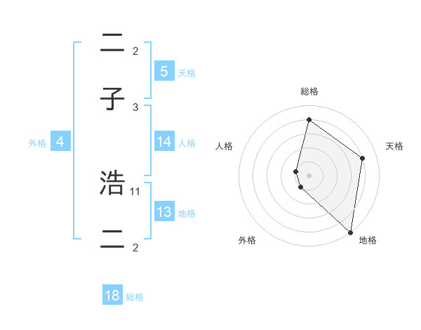 二子 浩二さんの天格は5画の4点!