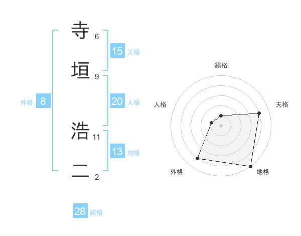 寺垣 浩二さんの総格は28画の1点!