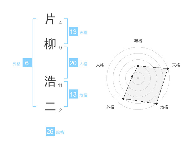 片柳 浩二さんを姓名の画数から五運を鑑定