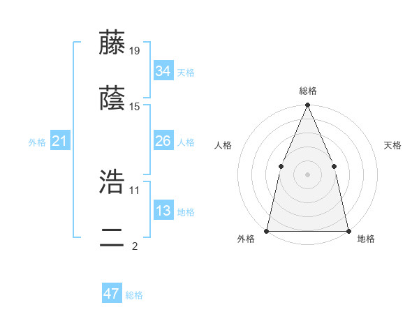 藤蔭 浩二さんの総格は47画の5点!