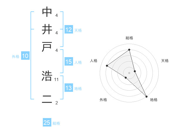 中井戸 浩二さんを姓名の画数から五運を鑑定