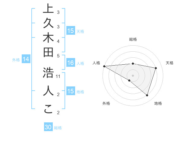 上久木田 浩人こさんを姓名の画数から五運を鑑定