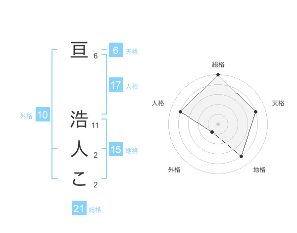 亘 浩人こさんの総格は21画の5点!