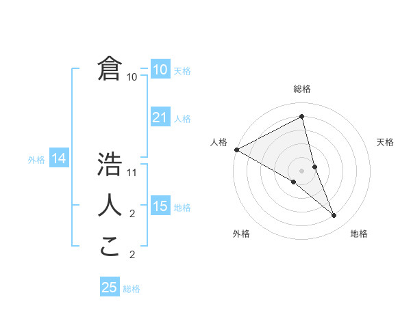 倉 浩人こさんの総格は25画の4点!