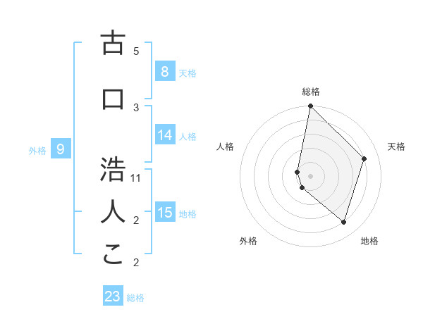 古口 浩人こさんの総格は23画の5点!