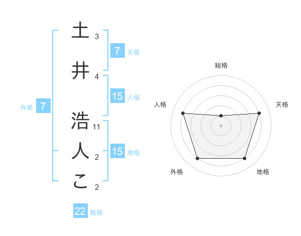 土井 浩人こさんを姓名の画数から五運を鑑定