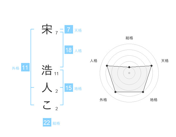 宋 浩人こさんの総格は22画の1点!