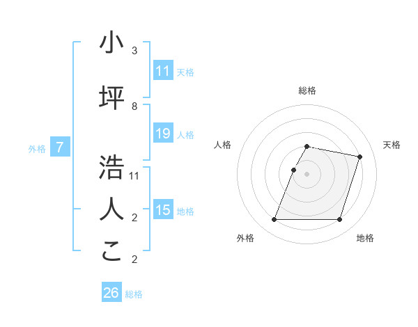 小坪 浩人こさんの天格は11画の4点!