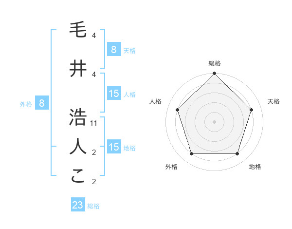 毛井 浩人こさんを姓名の画数から五運を鑑定