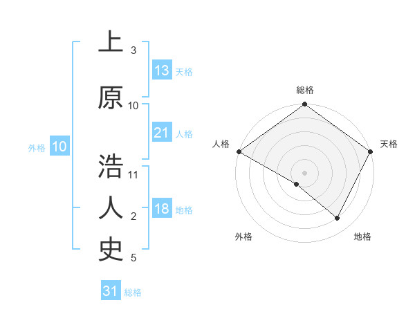 上原 浩人史さんを姓名の画数から五運を鑑定