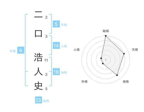 二口 浩人史さんの総格は23画の5点!