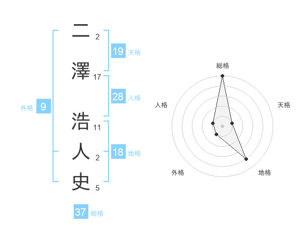 二澤 浩人史さんの総格は37画の5点!